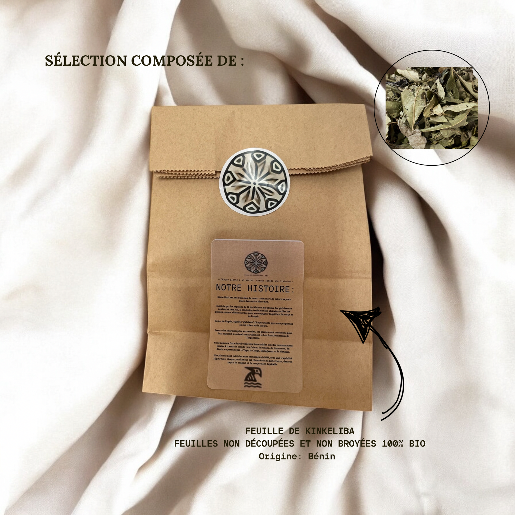 Origine 100% naturelle et sauvage. Nos plantes poussent à l'état sauvage, à l'air libre, sur des terres non traitées, souvent en pleine brousse ou en forêt tropicale. Elles sont récoltées à la main, dans le respect des traditions ancestrales, sans intrants chimiques, ni transformation industrielle. Pour maximiser ce processus nos plantes sont emballés sur place. Feuilles vendues entières non découpées ni traitées