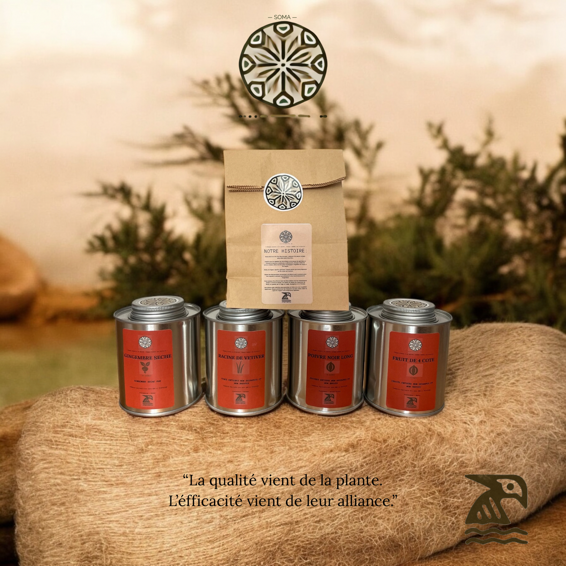 Origine 100% naturelle et sauvage. Nos plantes poussent à l'état sauvage, à l'air libre, sur des terres non traitées, souvent en pleine brousse ou en forêt tropicale. Elles sont récoltées à la main, dans le respect des traditions ancestrales, sans intrants chimiques, ni transformation industrielle. Pour maximiser ce processus nos plantes sont emballés sur place. Feuilles vendues entières non découpées ni traitées