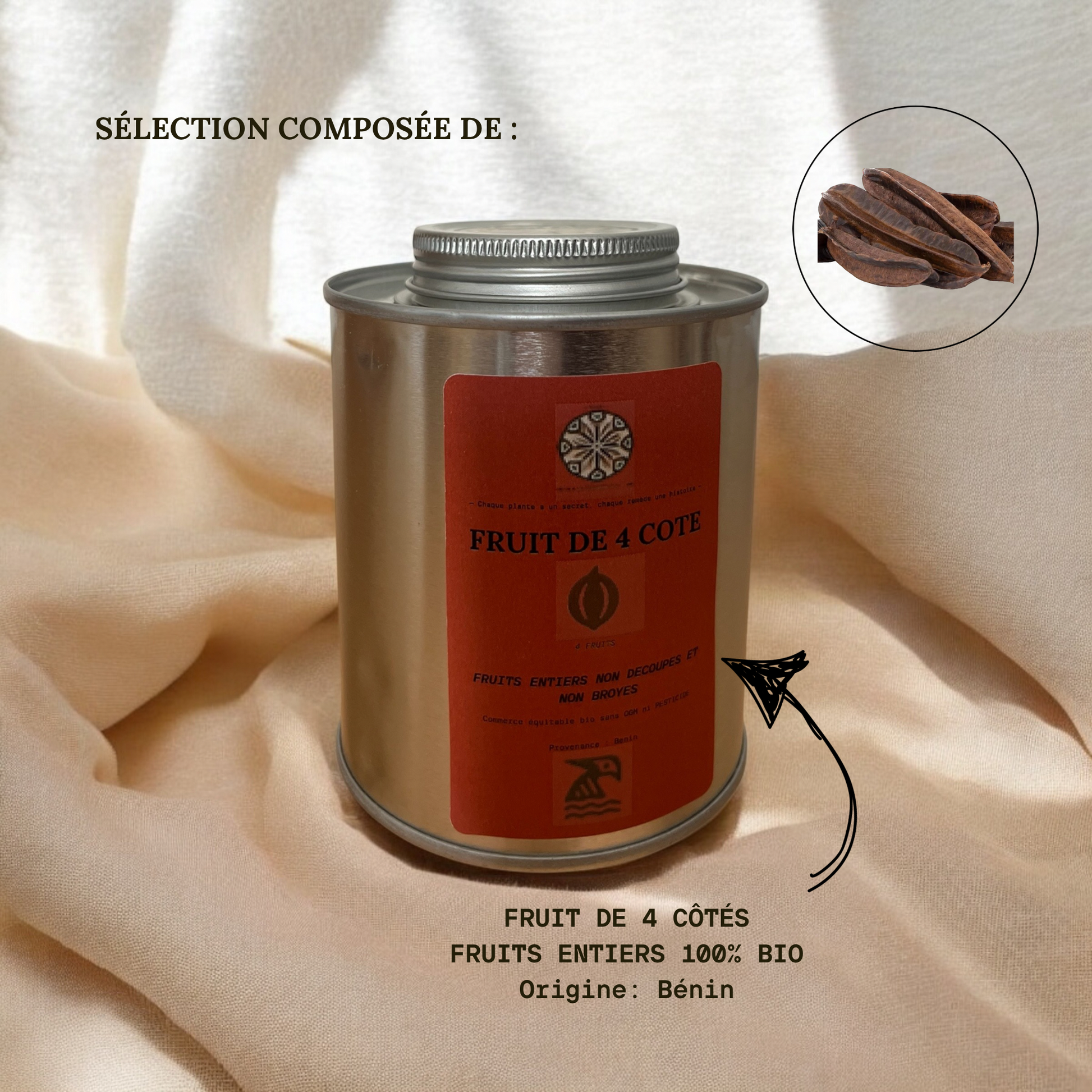 - Plante 4 côtés : Plante incontournable des traditions ouest-africaines, utilisée pour favoriser l’harmonie hormonale et soutenir un cycle menstruel régulier. Elle est aussi appréciée pour sa capacité à revitaliser et à préparer l’organisme à la conception.