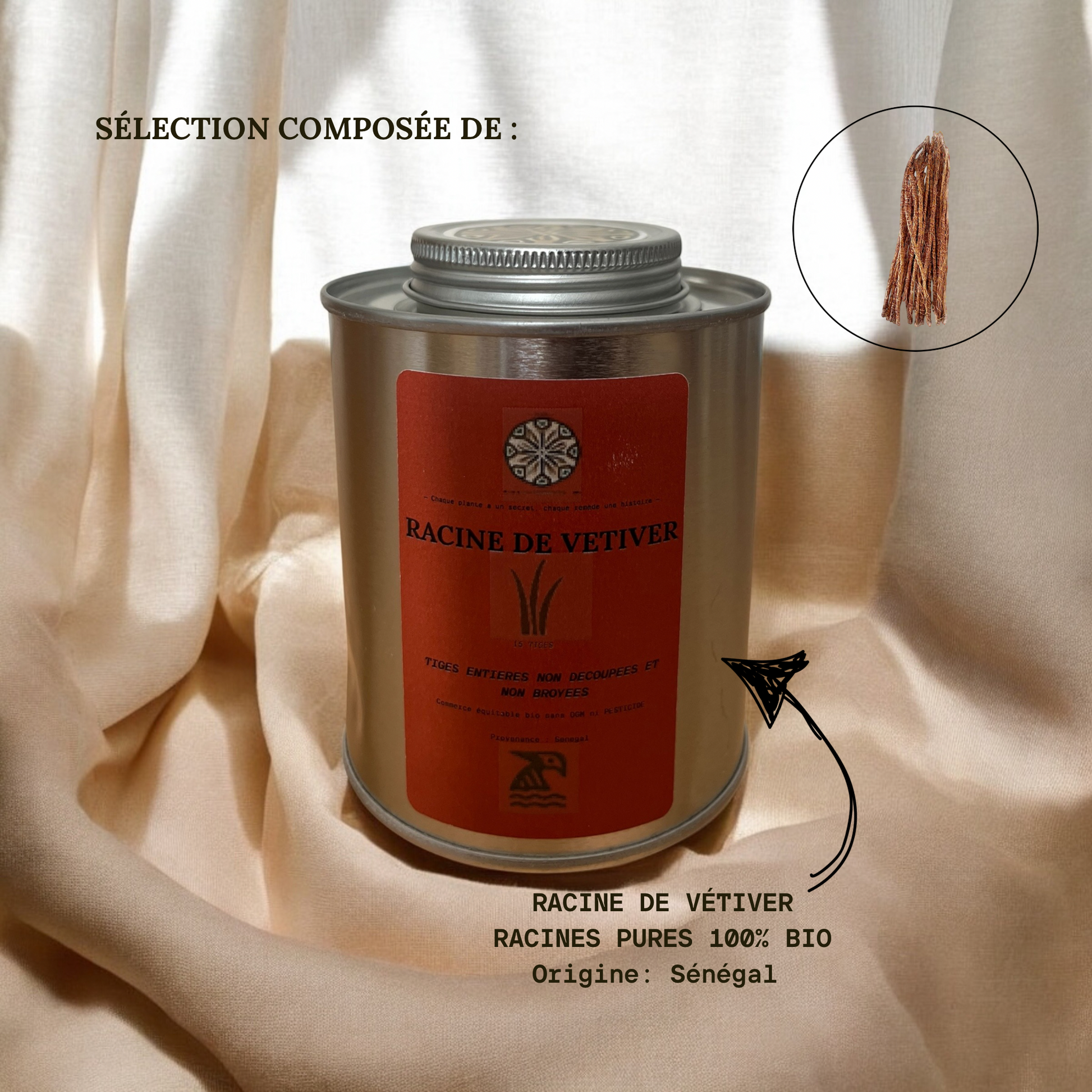 - Feuille de Vétiver : Reconnue pour ses vertus relaxantes, elle aide à apaiser le stress, un facteur souvent impliqué dans les déséquilibres hormonaux, et soutient la circulation dans la région pelvienne.