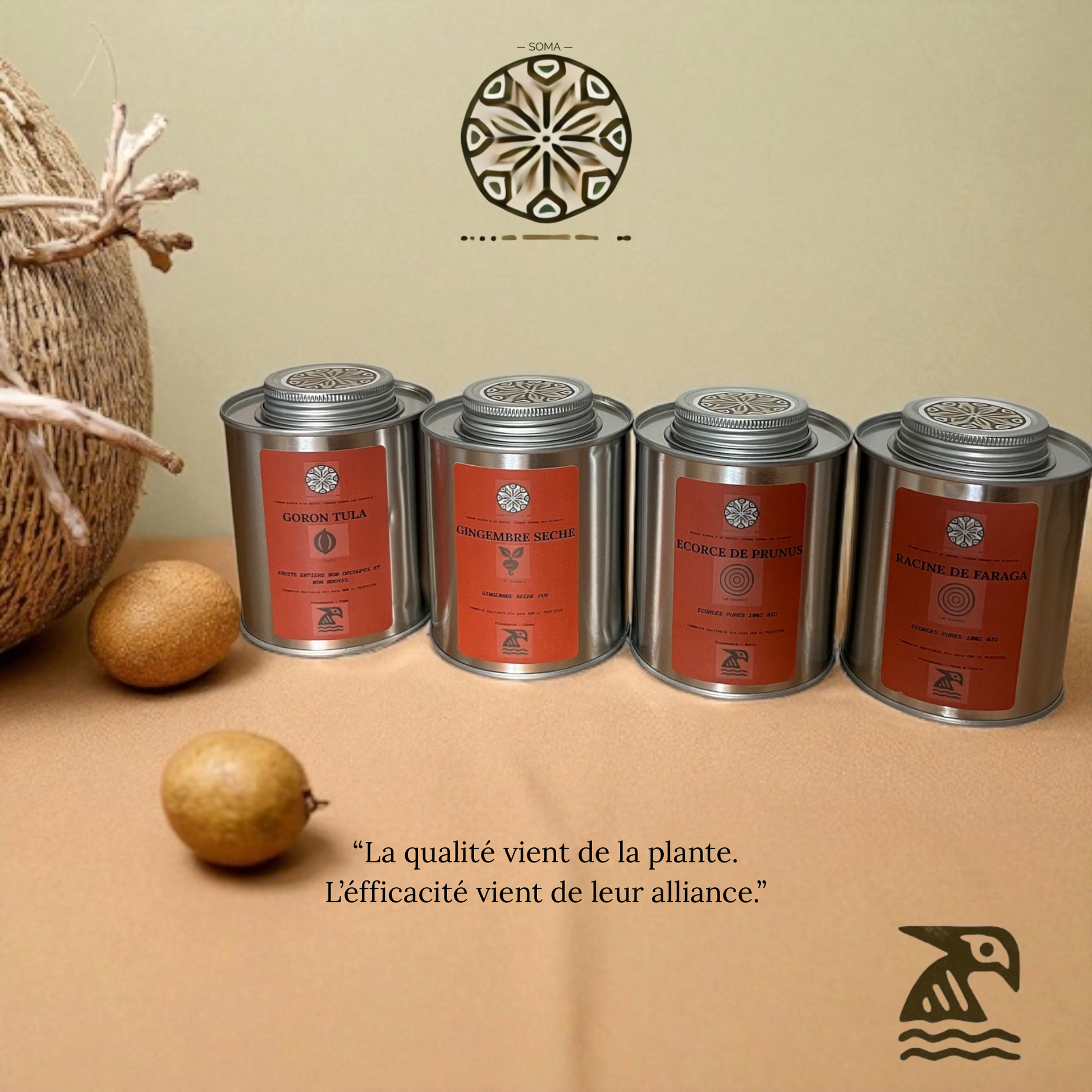 • Goron Tula (Azanza garckeana) : Fruit ancestrallement reconnu pour accompagner les hommes dans leur parcours de fertilité. Il est apprécié pour sa richesse nutritionnelle et ses usages liés au soutien de la fonction reproductive.