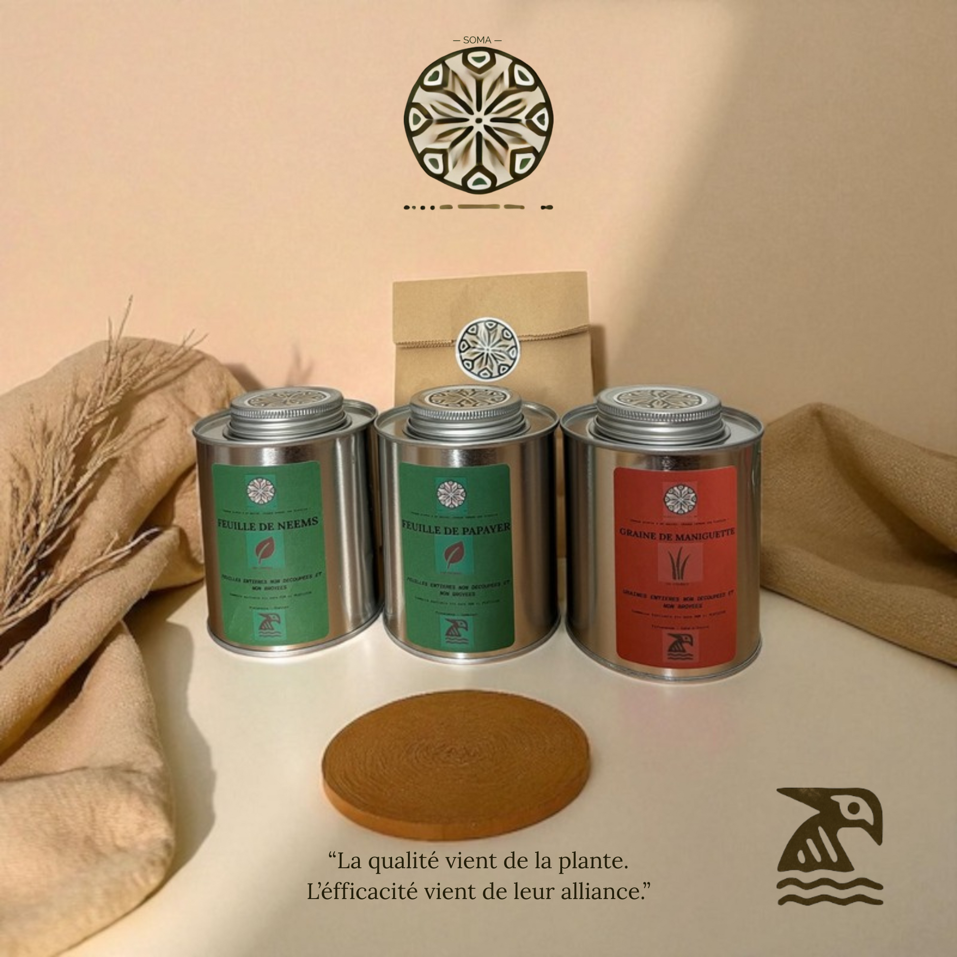 Origine 100% naturelle et sauvage. Nos plantes poussent à l'état sauvage, à l'air libre, sur des terres non traitées, souvent en pleine brousse ou en forêt tropicale. Elles sont récoltées à la main, dans le respect des traditions ancestrales, sans intrants chimiques, ni transformation industrielle. Pour maximiser ce processus nos plantes sont emballés sur place. Feuilles vendues entières non découpées ni traitées
